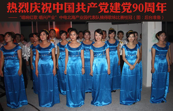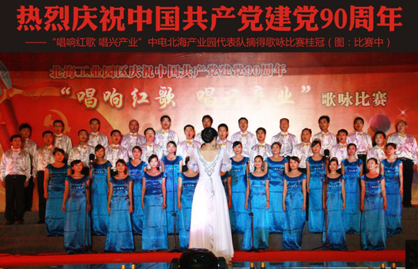熱烈慶祝中國(guó)共產(chǎn)黨建黨90周年<br>——“唱響紅歌 唱興產(chǎn)業(yè)”中電北海產(chǎn)業(yè)園代表隊(duì)摘得歌詠比賽桂冠